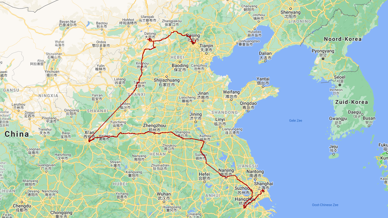 De route van Shanghai naar Beijin: